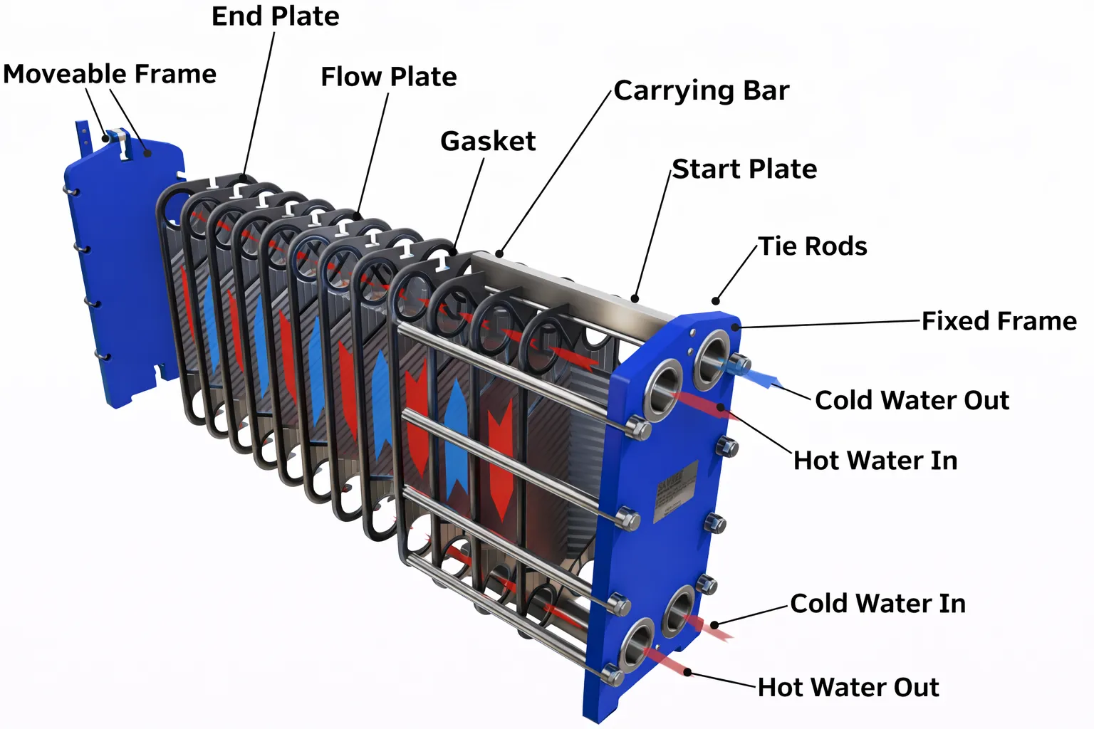 Each heat exchanger plate material is selected based on fluid compatibility, corrosion resistance, temperature limits, and long-term operating reliability.